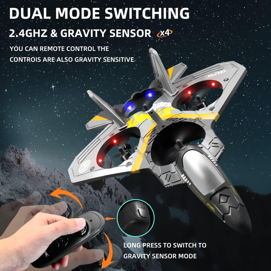Oduševite mališane ovim RC borbenim avionom, savršenim za djecu od 8 do 12 godina (ali i početnike svih uzrasta). Napravljen od laganog i otpornog materijala, avion dolazi potpuno spreman za let – bez sastavljanja. Zahvaljujući 6-osnom žiroskopu, avion je stabilan i jednostavan za upravljanje, dok funkcije poput jednostavnog polijetanja i slijetanja, 360° okreta i gravitacijskog upravljanja čine letenje zabavnim i sigurnim.