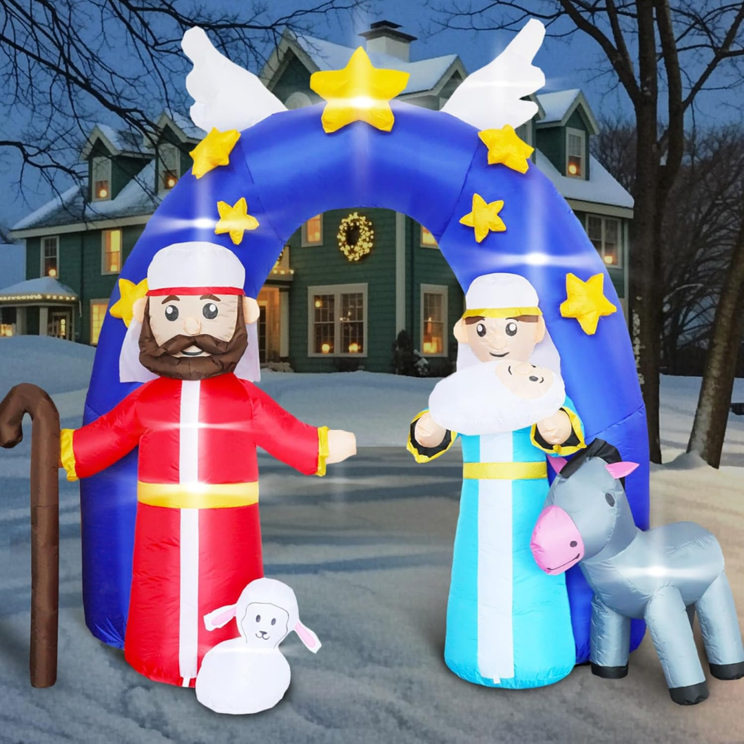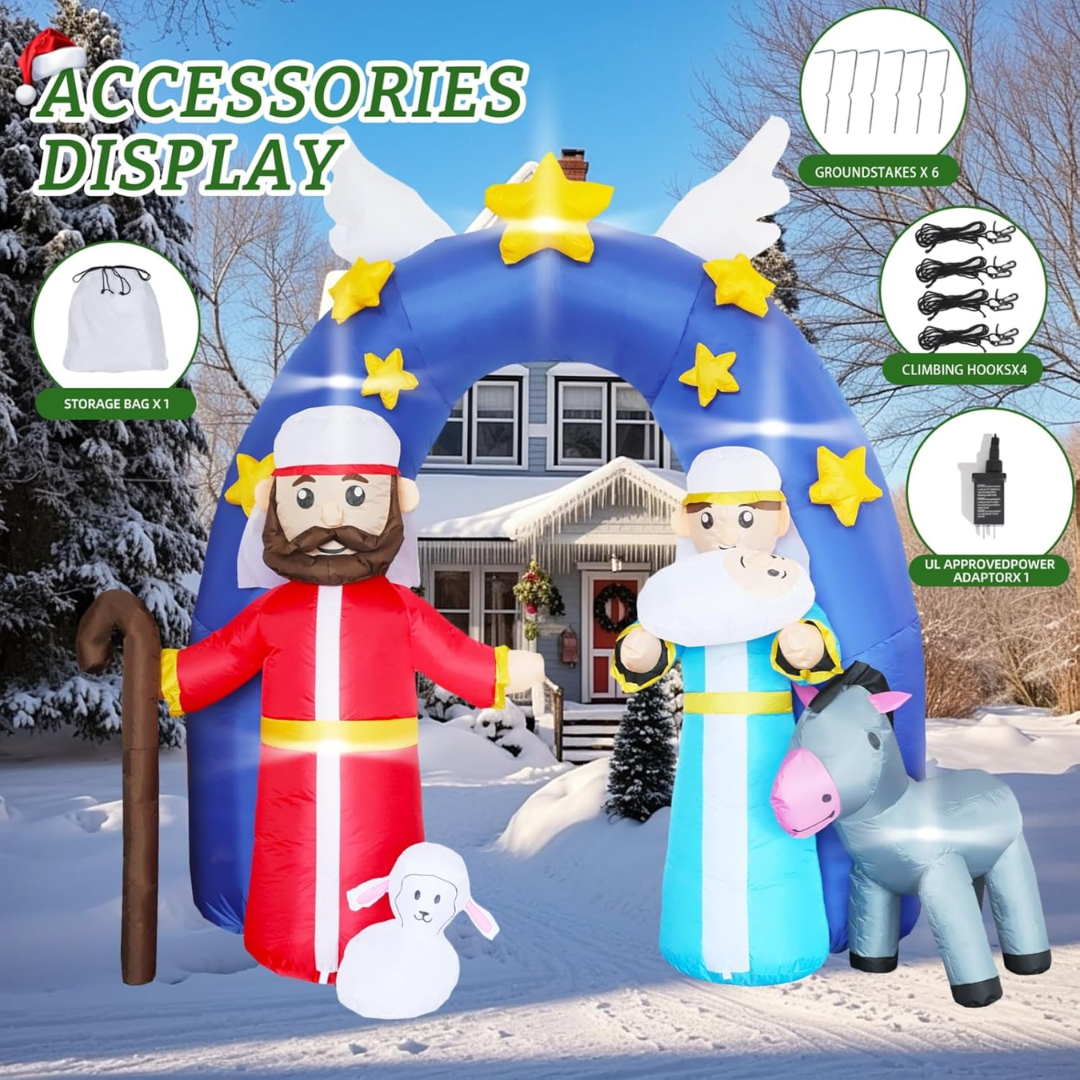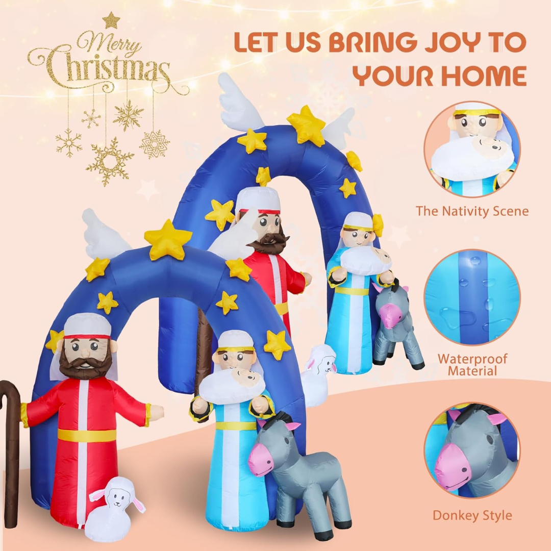 Stvorite čarobnu blagdansku atmosferu uz veliki napuhani božićni portal s jaslicama i ugrađenim LED osvjetljenjem. Ovaj impresivan dekorativni element privlači pažnju, naglašava toplinu Božića i pretvara svaki ulaz, vrt ili okućnicu u pravi božićni prizor.